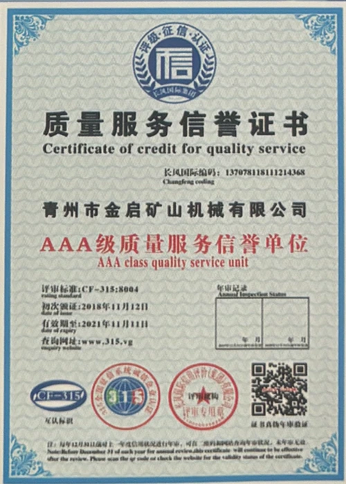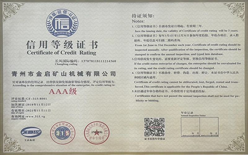 په صنعت کې د کلونو ژورې تجربې سره، د سخت کیفیت کنټرول او دوامداره ټیکنالوژیکي نوښتونو باندې تکیه کولو سره، شرکت یو شمیر مستند وړتوبونه، تصدیقونه او د پیټینټ سندونه ترلاسه کړي، په شمول د ISO کیفیت مدیریت سیسټم تصدیق، د کان کیندنې محصول خوندیتوب تصدیق، او همدارنګه د ډیری اختراع پیټینټ او د انرژی ماډل کولو لپاره د تجهیزاتو او تجهیزاتو اپیټینګ ساختماني تجهیزاتو او اپیټینګ کولو لپاره. د ژور تخنیکي ځواک ښودنه او د مطابقت تولید تضمین.